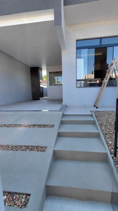 Geminado João Pessoa Imóvel com excelente padrão de acabamento e uma planta bem resolvida, pensado para quem busca conforto, funcionalidade e uma localização tranquila para viver. 02 suítes 01 office (perfeito para home office ou terceiro quarto) Lavabo Sala e cozinha em living integrado Área gourmet com churrasqueira Área de serviço isolada com janela externa 02 vagas de garagem cobertas **Área construída:** 83 m² Rebaixo em gesso em todos os ambientes Sanca em gesso no living Piso porcelanato Iluminação em LED Massa corrida nas paredes Portas brancas laqueadas Soleiras em mármore Nichos nos banheiros Portão basculante com portão social Preparação para ar-condicionado split em todos os ambientes Paisagismo Localizado no bairro João Pessoa, uma região tranquila e em crescimento, com fácil acesso a outros bairros da cidade. Aceita financiamento bancário Avalia veículo como parte do pagamento Se você procura um geminado com duas suítes, espaço para home office e acabamento de qualidade, vale a pena conhecer este imóvel. Entre em contato para mais informações ou agendar sua visita.
