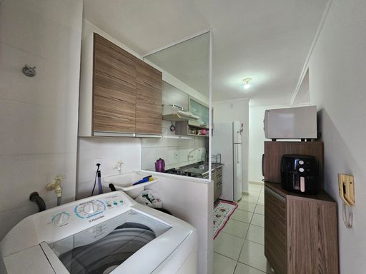 Com 02 dormitórios, sala, cozinha, área de serviço, banheiro social e sacada com churrasqueira. Possui móveis sob medida.