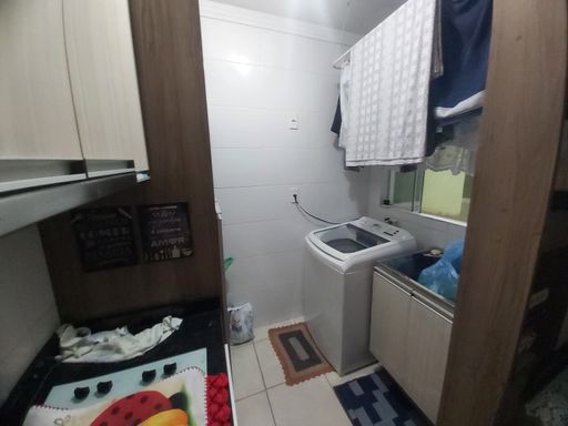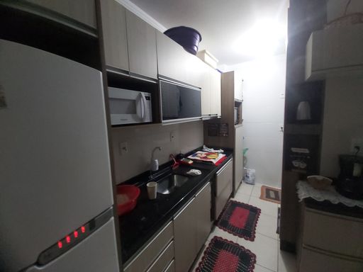 02 dormitórios, 01 banheiro, Sala de estar, 01 cozinha com área de serviço conjugada, sacada fechada com churrasqueira a carvão e 01 vaga de garagem coberta.